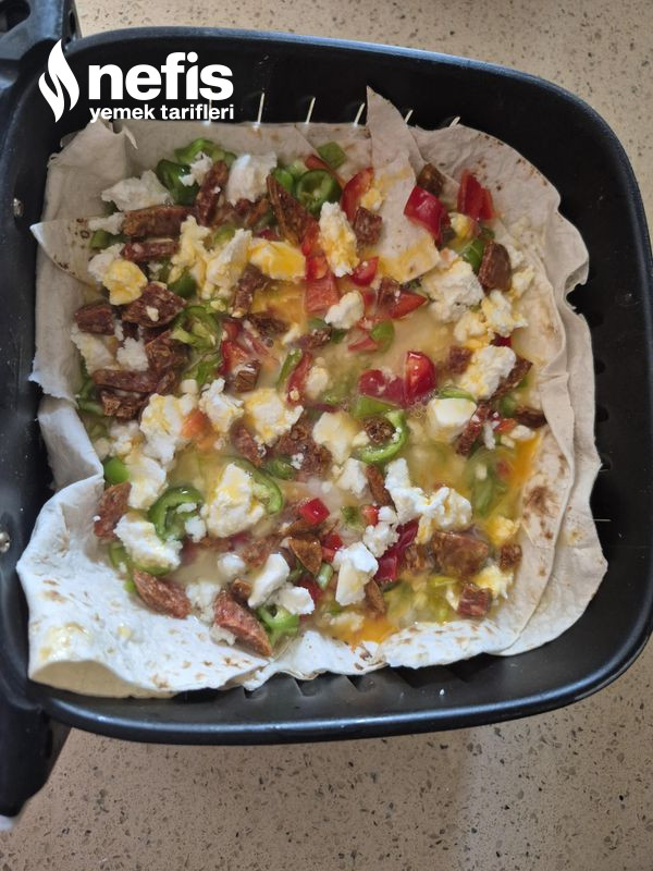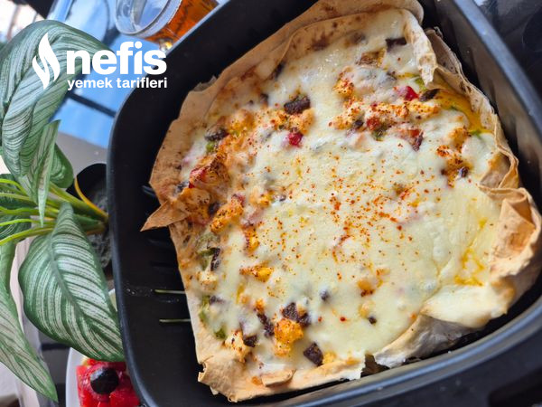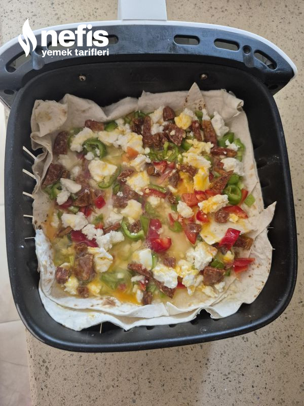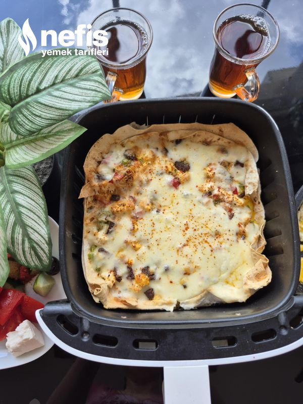 - Airfreyinizi 190 derece 7 dakikaya ayarlayın pişince kaşar peynirleri ek edip 2 dakika pişirin pratik sağlıklı lavaş pizzanız sunuma hazırdır “mükemmel afiyet olsun.