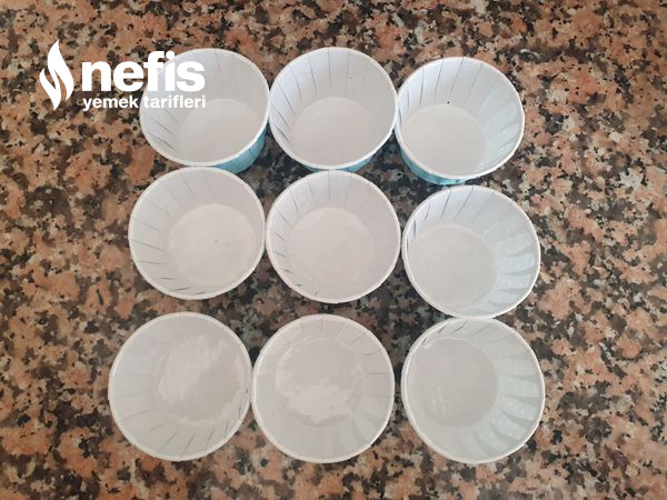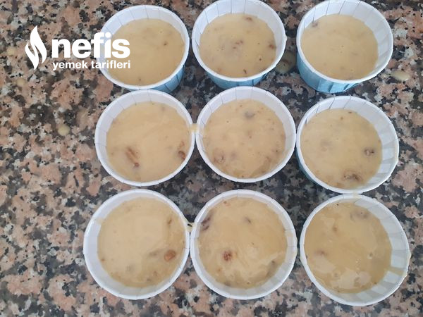 7. Karışımı küçük kek kalıplarına ya da muffin kaplarına paylaştırın. (yarısını biraz geçecek kadar doldurun. ).