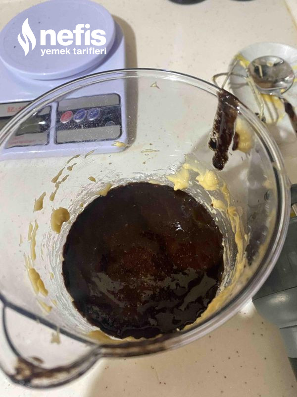 - Son olarak kabımıza çikolata ve tereyağı karışımı da eklenerek güzelce çırpılır.