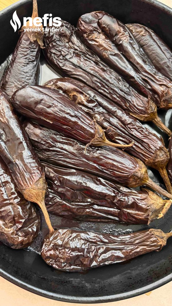 1. Patlıcanlara kesikler atıp üzerine zeytinyağı gezdirip 40-45 dk 200 derecede közleyelim. Biberleri de tıpkı halde közleyelim. Biberlere kesik atmayın.