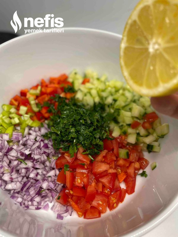 4. Maydanoz ve dereotunu ince ince kıyın ve limon suyunu ek edin.