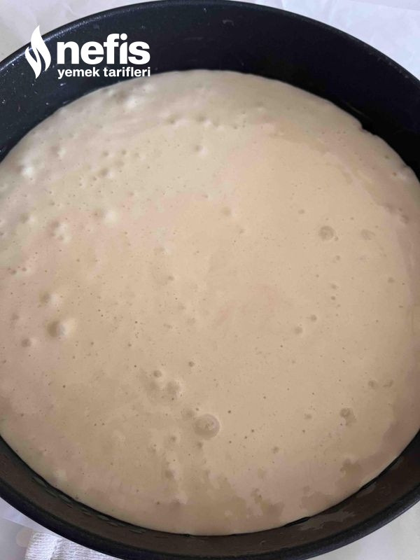 1. Kek karışımını hazırlayıp kelepçeli bir kalıba döküyoruz.
