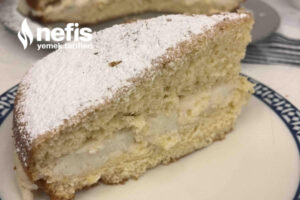 4. İkiye böldüğümüz kekin ortasına kremayı sürüyoruz. Üzerine başka parçayı karıştırıyoruz. Üzerine pudra şekeri döküp servis yapıyoruz, afiyet olsun….