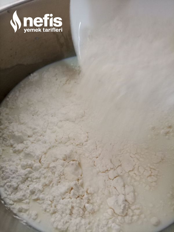 - Bir tencereye sütü alın. Üzerine un, nişasta ve şekeri ekleyin.
