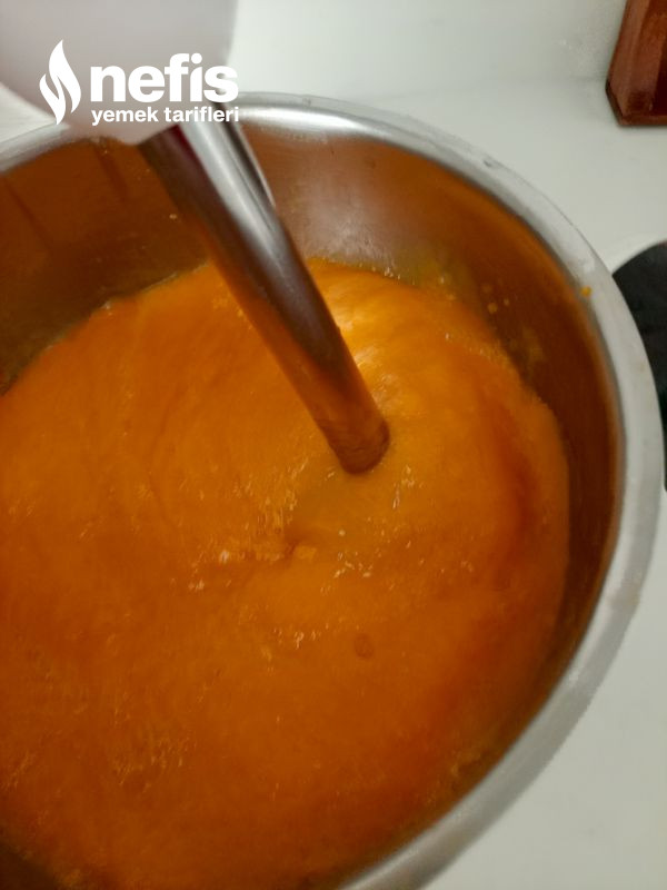 - Muhallebiyi hazırladıktan sonra doğranmış mangoları tencereye alın. Üzerine 2 su bardağı su ekleyin, blender ile püre haline getirin.