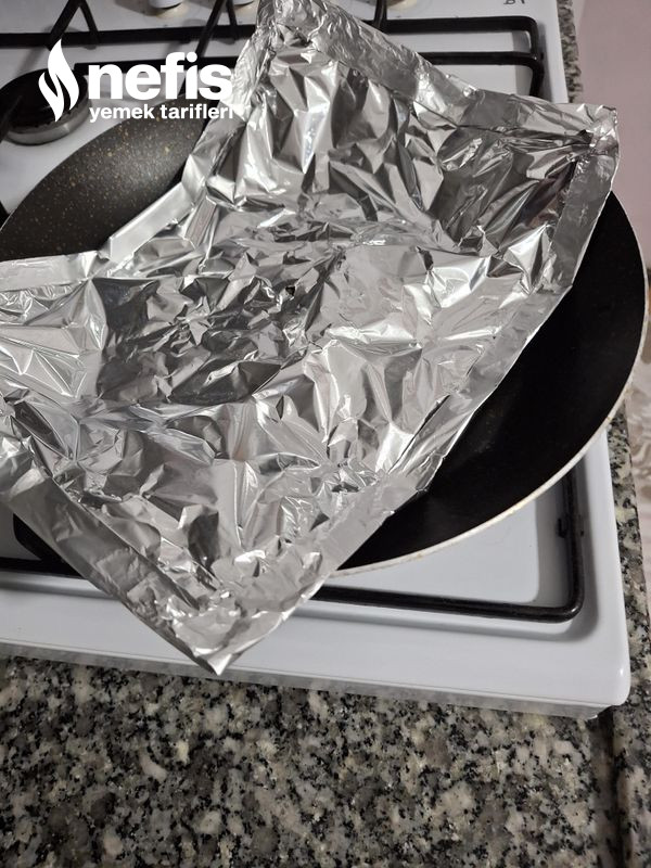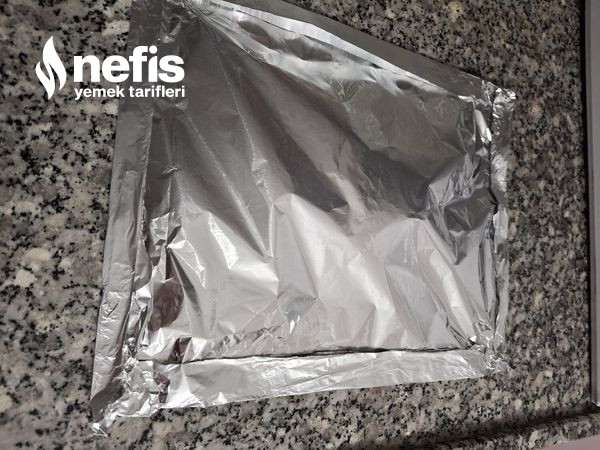 2. Üzerine tekrar alüminyum folyo serip yanları kıvıralım.