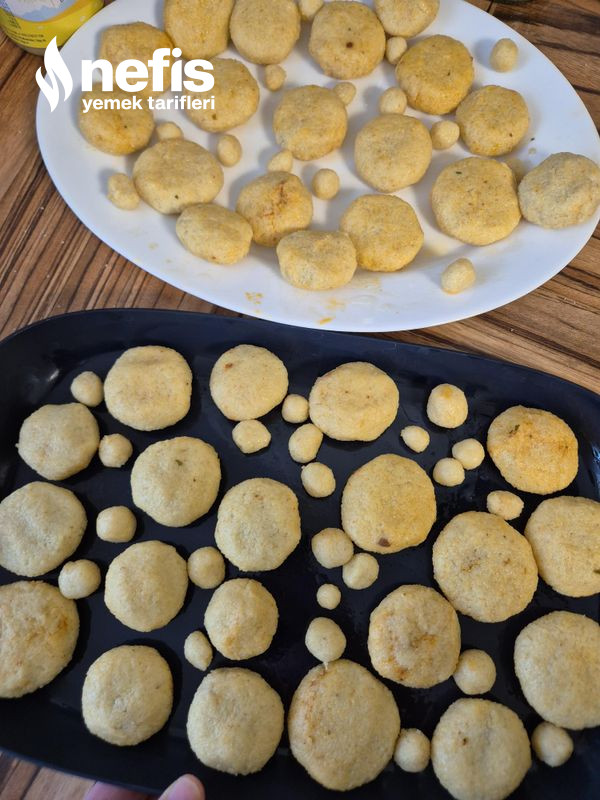 5. Hamurdan ceviz büyüklüğünden daha küçük hamur koparılır el ile yuvarlanır, sonra bastırılır, böylelikle elinizde yuvarlak düz hamur olacaktır. Size tavsiyem her beze açılmasında parmak uçlarınızı sıvı yağ ile hafif yağlayın yahut parmak uçlarınızı ıslatın, böylelikle hamur elinize yapıṣmayacaktır lakin size tavsiyem yağ ile açmanız.