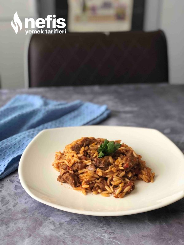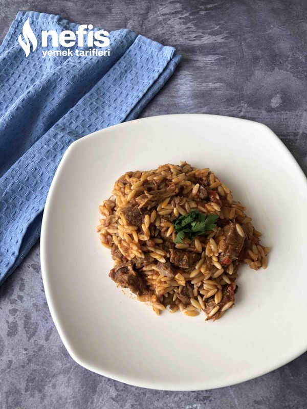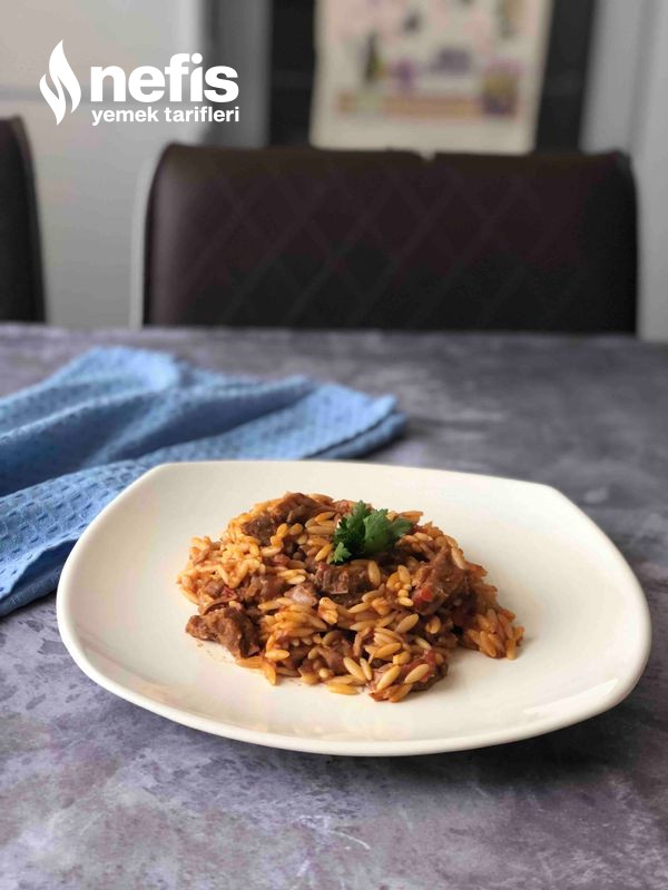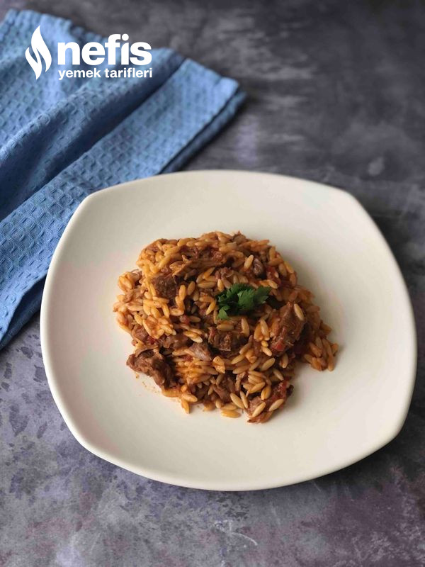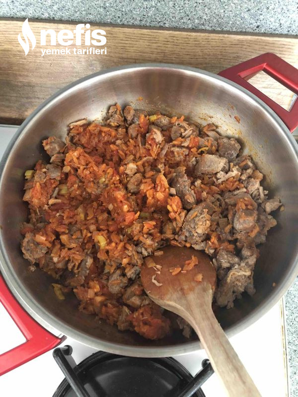 - Şehriye koyun karıştırın ve pişen etini koyun sıcak su ve tuz ekleyip karıştırın kapağını kapatın kısık ateşte pilav üzere pişirmeye bırakın. Afiyet olsun.