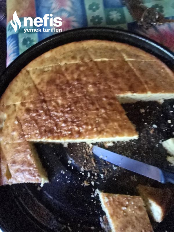- Yuvarlak borcam yahut borcam büyüklüğünde çelik tepsi sıvı yağla yağlanır. Kek harcı tepsiye dökülür.