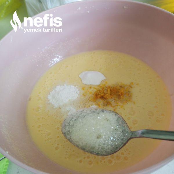 - Zeytinyağı ve yoğurdu ek edip tekrar çırpalım, daha sonra vanilya, kabartma tozu ,rendelenmiş limon kabuğu ve birkaç damla limonla köpürttüğümüz karbonatı ek edip karıştıralım.