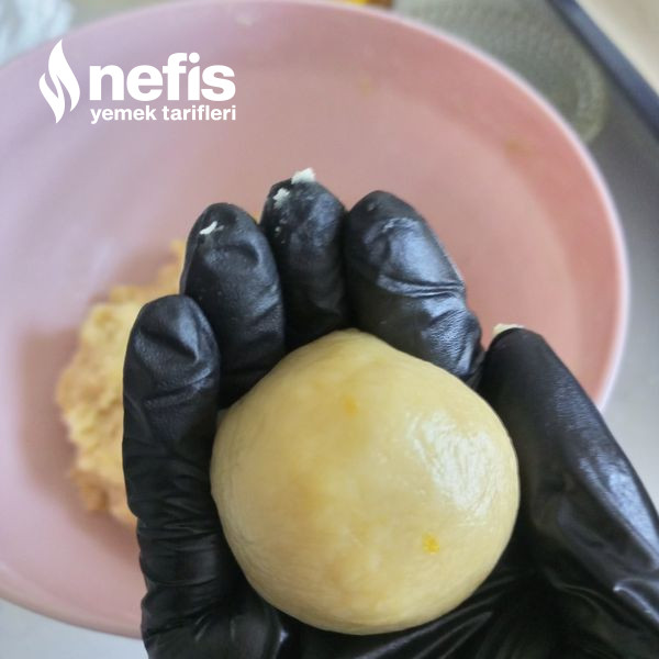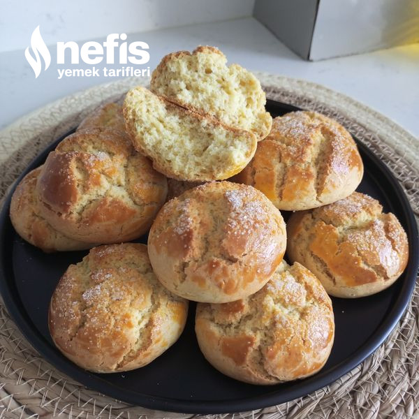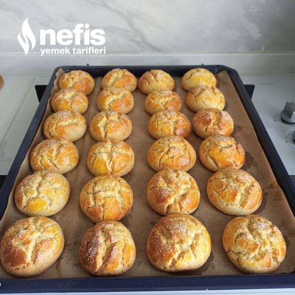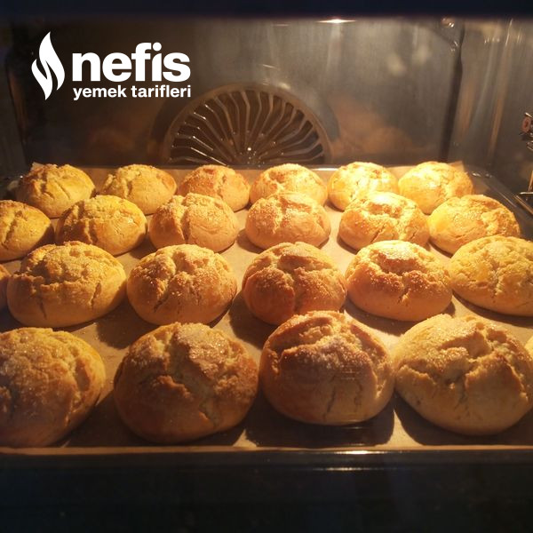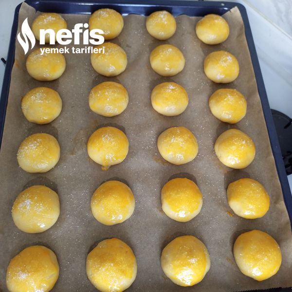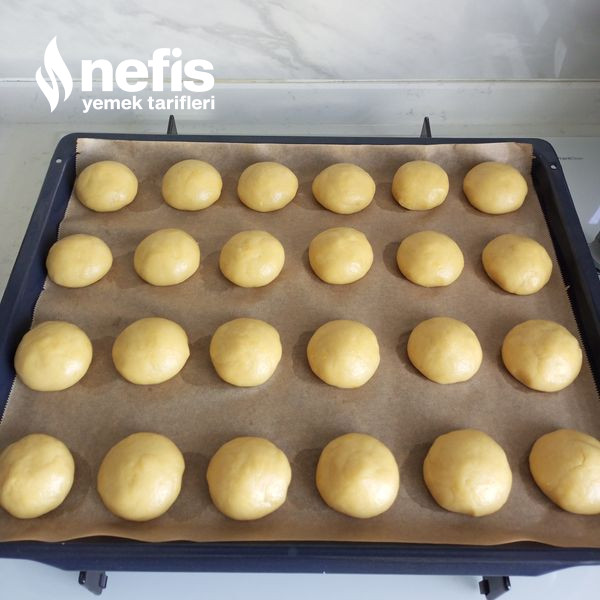- Hamur ele yapışan bir hamur olacağı için unu dikkatli kullanın ,hamurdan mandalina büyüklüğünde modüller koparıp yuvarlayalım ,pişirme kağıdı serdiğimiz fırın tepsisine aralıklarla dizelim.