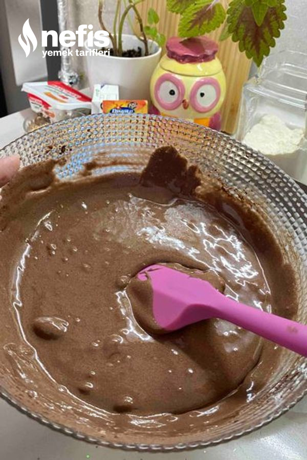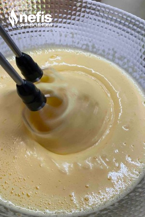 - Öncelikle keki hazırlıyoruz yumurta ve şekeri köpürene kadar çırpıyoruz. Öbür gereçleri de ekleyip akışkan kıvamlı hamur elde ediyoruz ,ben kelepçeli kalıp kullandım.