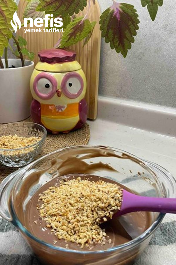- Ganaj için kremayı ısıtıp içine çikolatayı ( ben yarısını bitter yarısını sütlü kullandım) ekleyip eriyene kadar karıştırıyoruz daha sonra içine fındıkları ekleyip karıştırıyoruz çok az soğuduktan sonra pastamızın üzerine döküyoruz.
