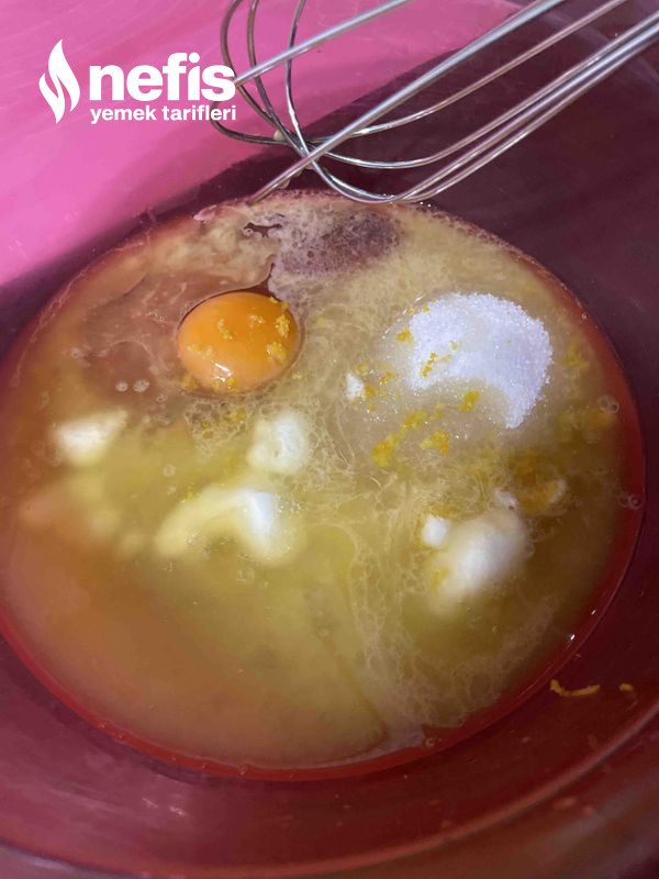 - Yoğurma kabına margarin, şeker, yumurta ve limon kabuğu alınıp karıştırılır.