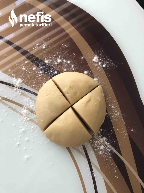 - Hamuru için kaba yumurtaları, şekeri, sütü, sıvı yağı, tuz ve kabartma tozu koyup el çırpıcıyla çırpın. En son un ekleyin göz kararı koyun yoğurun biraz sert hamur olacak ele yapışmayan biraz yumuşak kıvam olunca üzerini kapatıp, yarım saat dinlendirin.