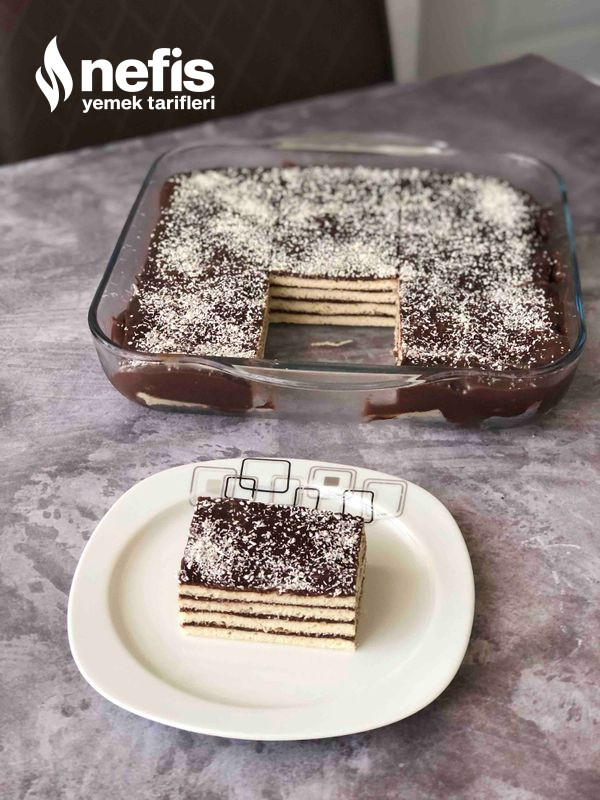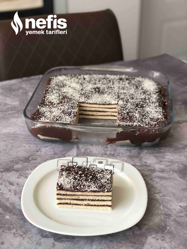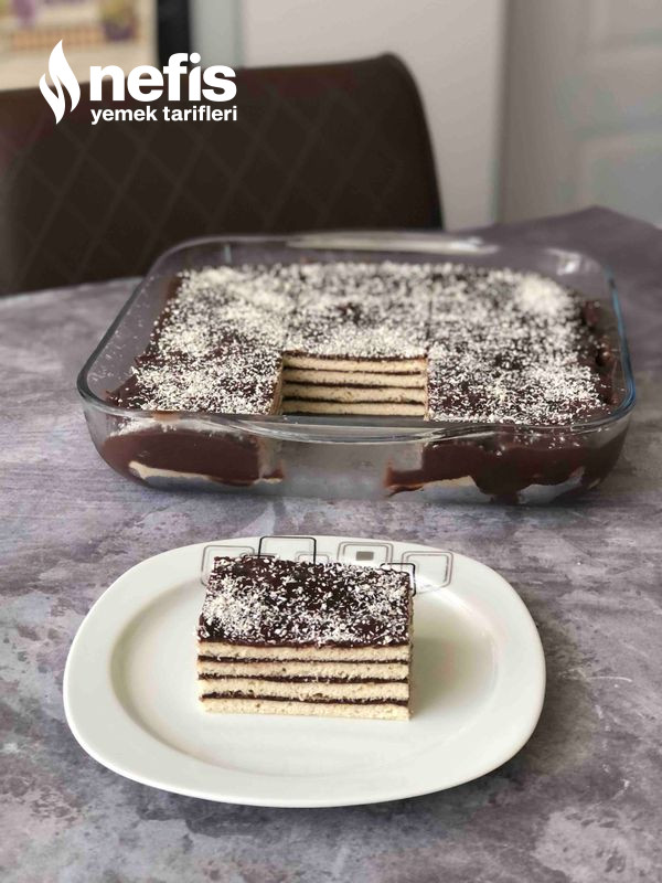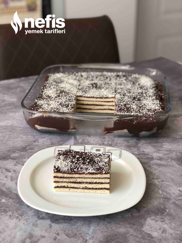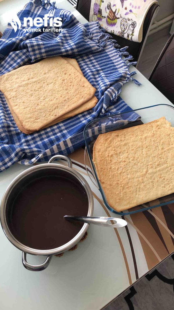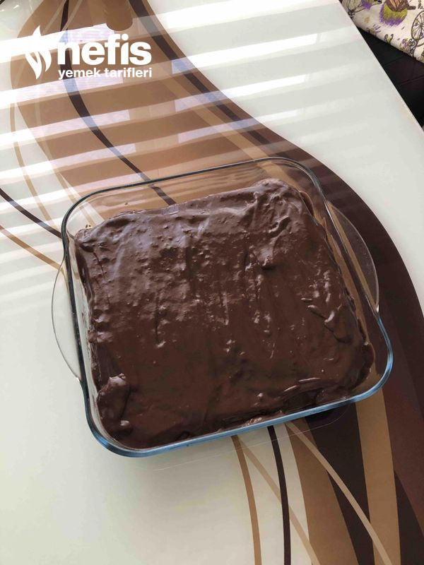- Kalıba bisküviyi koyup sıcak muhallebiyi gezdirin, üzerine tekrar bisküviyi koyun tekrar muhallebiyi gezdirin sırasıyla yapın.