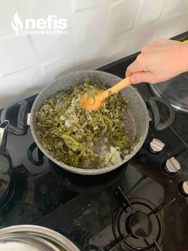 - Bu sırada bir yandan 3 soğan yemeklik doğranılır ve pişirilir. Soğan pişince börülceyi ekleyip, karıştırıyoruz. 10 dakika pişirince altını kapatıp, ocaktan aşın.