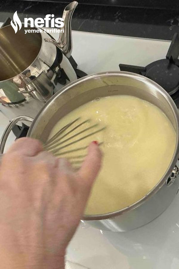 2. Önceden diğer bir kapta yumurta, un ve yoğurdu uygunca çırptığımız karışımı pirinç uzayınca üzerine ekliyoruz.