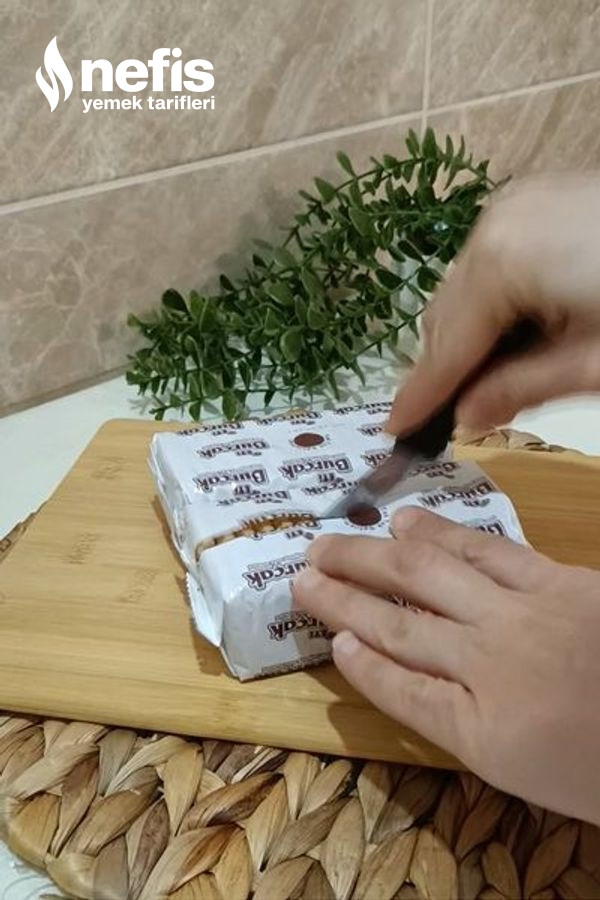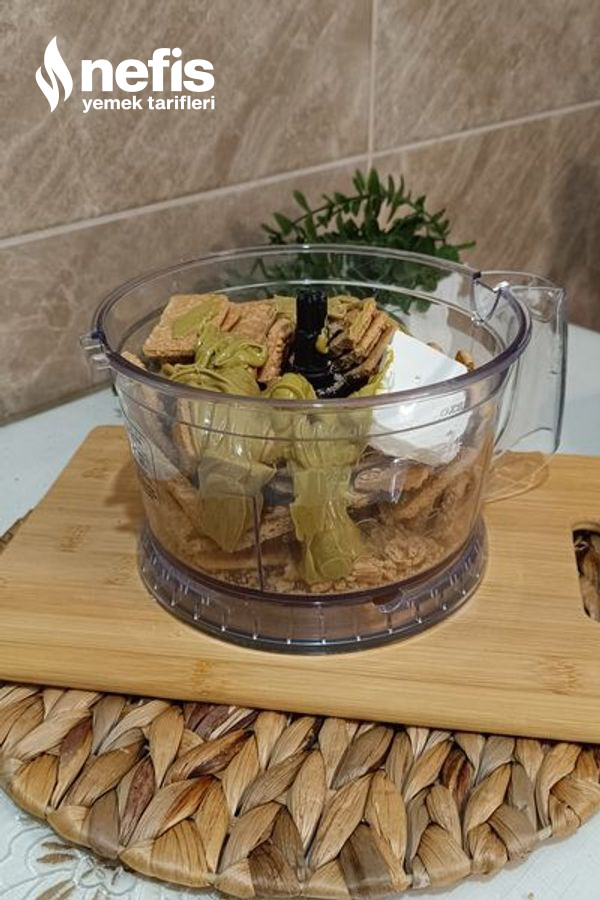 - Bisküvileri parçalayıp rondoya koyun. Üzerine fıstık kremasını tereyağını ve kaynatılan sütü ekleyip güzelce puding kıvamına gelene kadar çalıştırın.