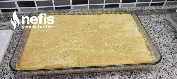 4. Hazırladığımız hamuru yalnızca tabanına yağlı kağıt serdiğimiz borcama döküp 170 derece ısıtılmış fırında pişirelim kürdan testi yaptığımızda kuru çıkıyorsa ve üstü kızardı ise pişmiş demektir.