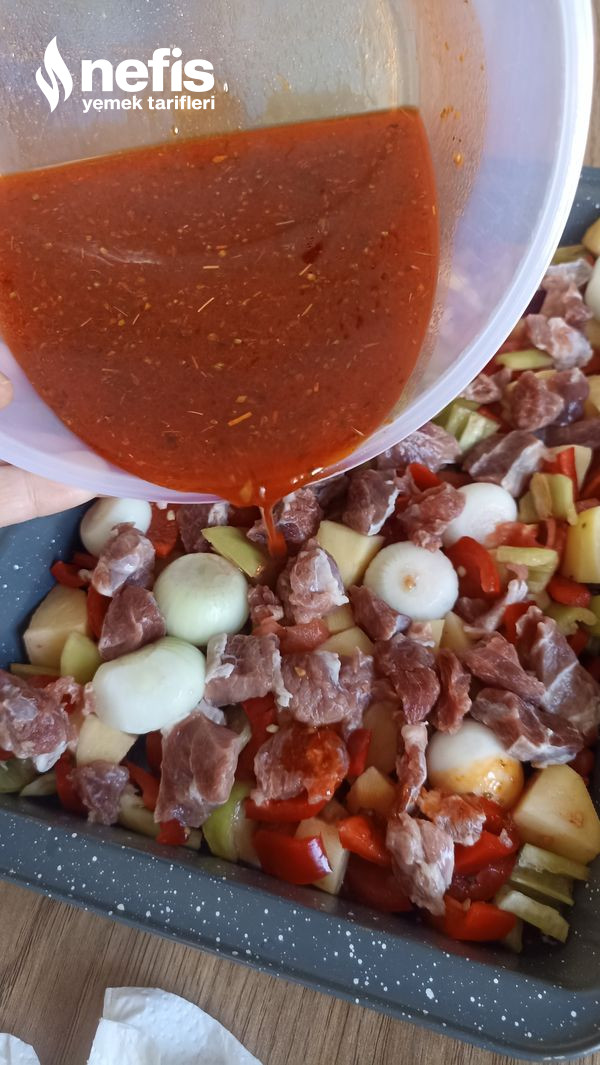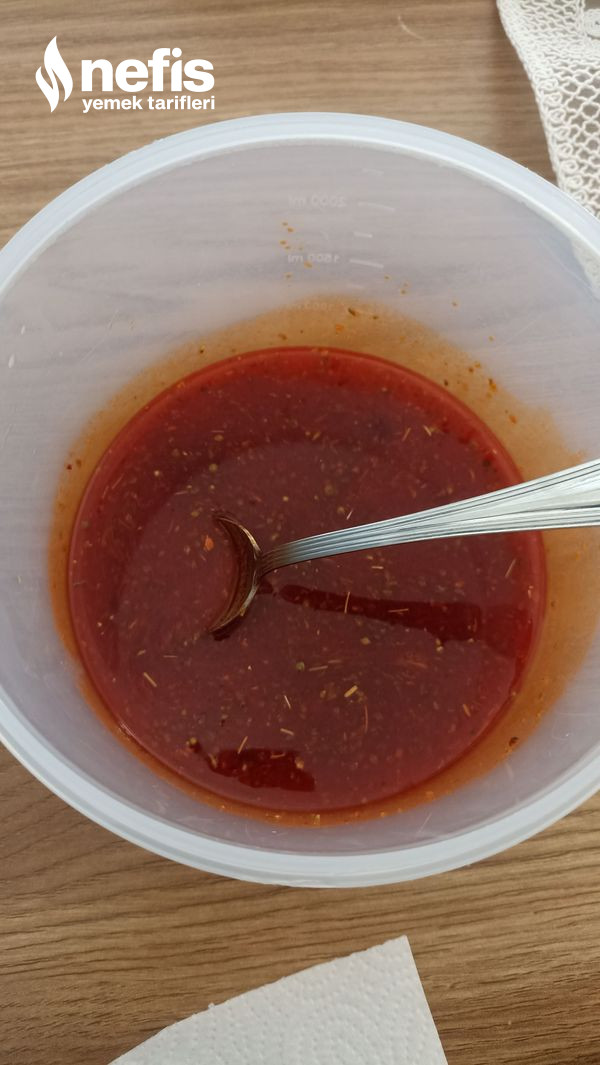 3. Hazırlamış olduğumuz sosu etlerin üzerinde gezdirip yeterlice her yerine akışını sağlıyoruz.