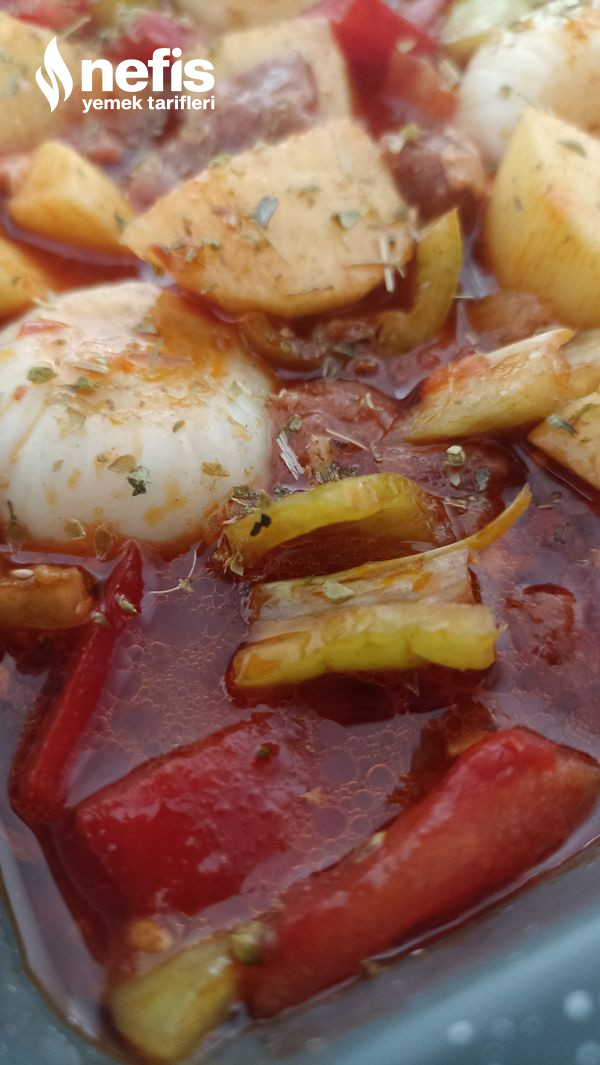 5. Üzerini folyoyla örtüp baharatlarla et ve zerzevat özleşsin diye ben 2 saat dolapta beklettim.