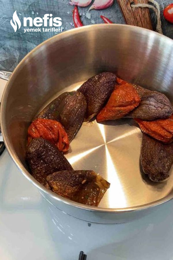 - Patlıcan ve biberleri kaynamış suya alıp yumuşayana kadar kaynatıp kenara alalım.