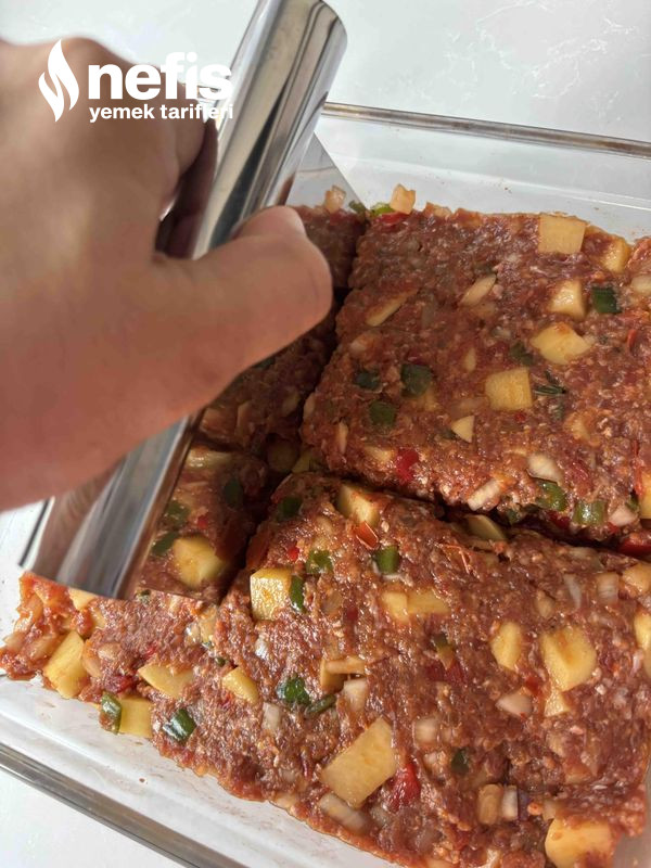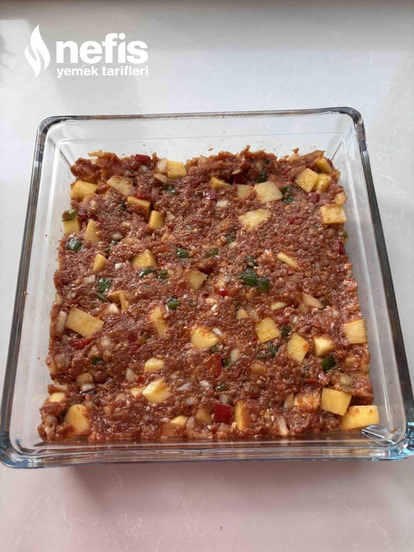3. Orta uzunluk fırın kabına kıymalı karışımı aktaralım ve düzenleyip istediğiniz halde dilimleyebilirsiniz, isteğe nazaran piştikten sonra da dilimleyebilirsiniz, akabinde yanmaz fırın kağıdını buruşturup musluğun altında biraz ıslatalım ve yemeğin üzerini açık kalmayacak biçimde bu kağıtla örtelim.