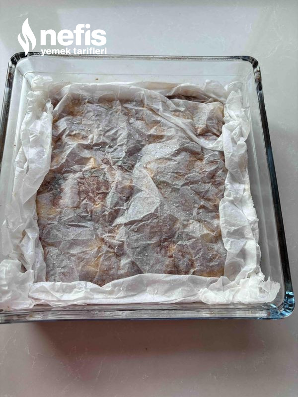 4. Önceden ısıtılmış 190°c fırında fanlı ayarda birinci evvel 35 dakika pişirelim, müddetin sonunda yağlı kağıdı üzerinden alalım, üzeri kızarana ve suyunu çekene kadar 20-25 dakika kadar denetimli olarak pişirelim.