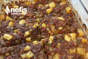3. Orta uzunluk fırın kabına kıymalı karışımı aktaralım ve düzenleyip istediğiniz halde dilimleyebilirsiniz, isteğe nazaran piştikten sonra da dilimleyebilirsiniz, akabinde yanmaz fırın kağıdını buruşturup musluğun altında biraz ıslatalım ve yemeğin üzerini açık kalmayacak biçimde bu kağıtla örtelim.