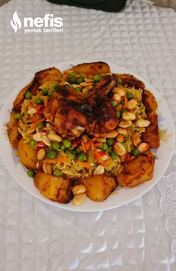 - Pişen pilavımızı servis tabağımıza koyup, üzerine kavurduğumuz materyalleri ekleyip, en üste de tavuğu koyup servis edebiliriz şimdiden deneyenlere afiyet olsun.