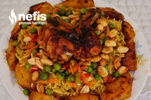 - Pişen pilavımızı servis tabağımıza koyup, üzerine kavurduğumuz materyalleri ekleyip, en üste de tavuğu koyup servis edebiliriz şimdiden deneyenlere afiyet olsun.