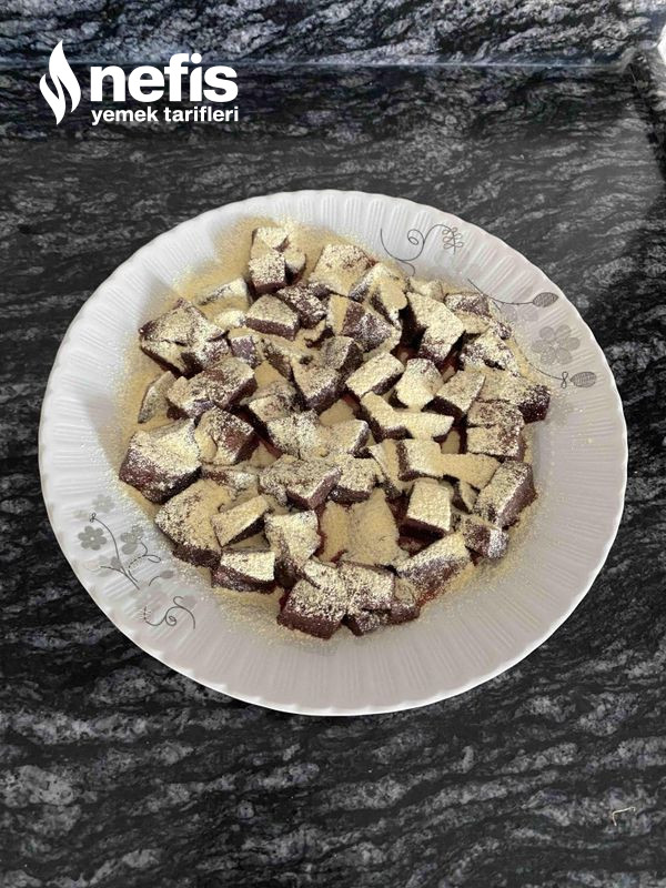 7. Üzerine unları eleyerek ekleyelim ve heryerin una bulanmasını sağlayalım(bunu bir poşete koyup sallayarak da yapabilirsiniz).