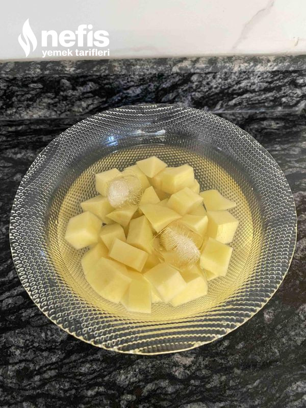 3. Patatesleri buzlu suda 10-15 dk bekletelim.