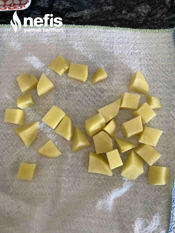 2. Patatesleri soyup küp küp doğrayalım ve yıkayalım.