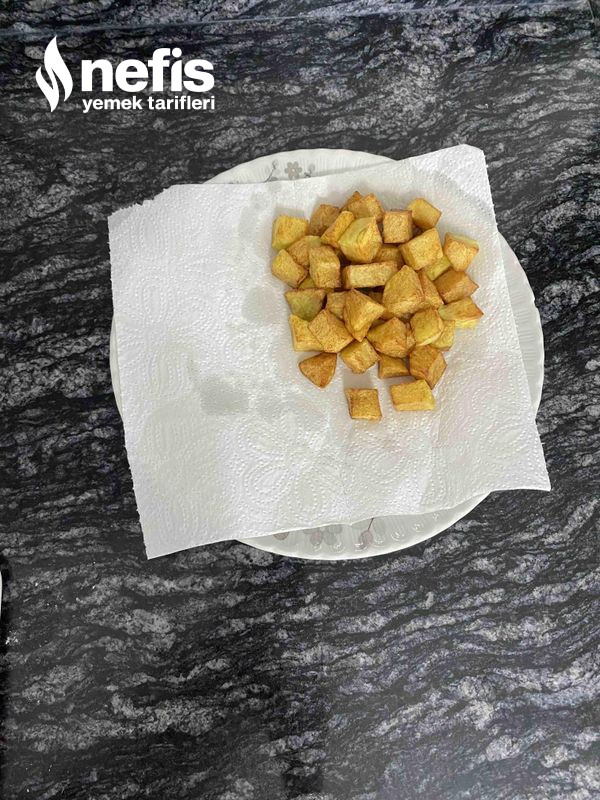 4. Sudan çıkardığımız patatesleri kurulayıp evvelden ısıttığımız sıvı yağın içine atalım, kızarıncaya kadar pişirelim.