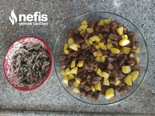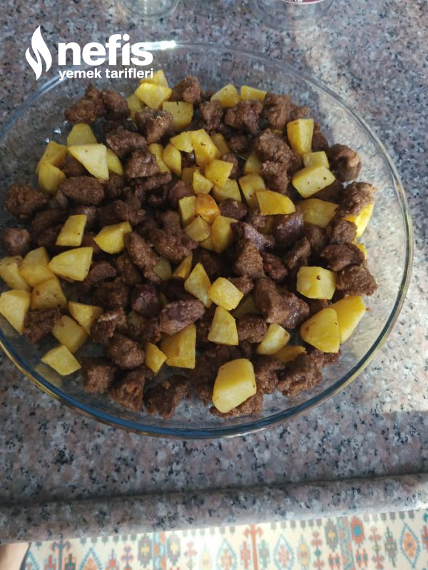 7. Ciğerleride patateslerin üzerine alalım. Karıştıralım.