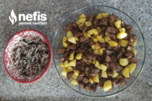 1. Öncelikle patatesleri soyup büyük küpler halinde doğrayalım. Kızgın yağa atıp kızartalım. Borcama alalım.