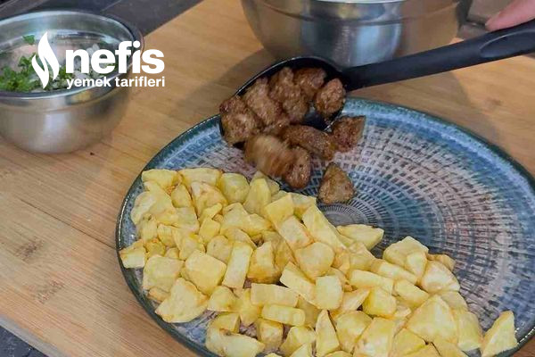 - O sırada patatesleri soyup küp küp doğrayıp kızartın.