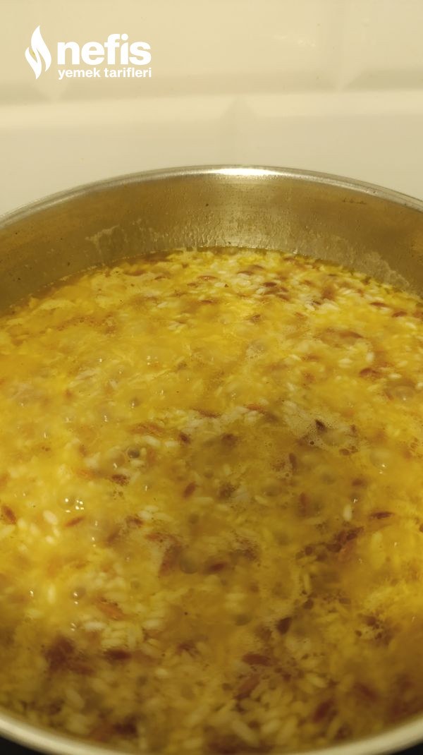 - Pirinci yıkıyoruz. Yayvan bir tencereye tereyağ, sıvı yağı alıp eritiyoruz. Üzerine arpa şehriyeyi ekleyerek kavuruyoruz. Üzerine yıkadığımız pirincimizi sıcak suyu ve tuzu ek ederek kaynamaya bırakıyoruz.