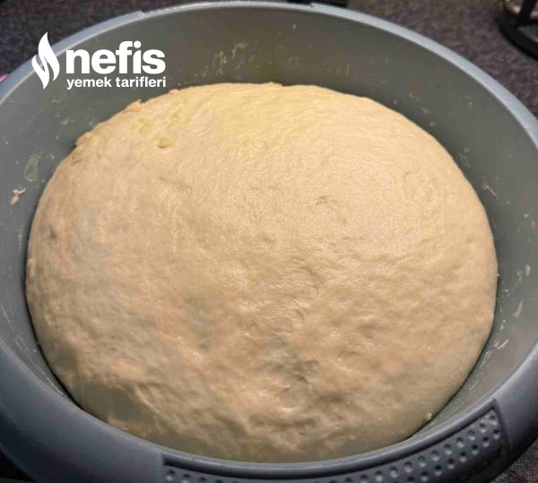 - Sonra aktifleştirdiğimizde bütün materyalleri koyup leğenin içinde güzelce un koyarak hamuru yoğuralım ve mayalanması için bir kenara alalım.