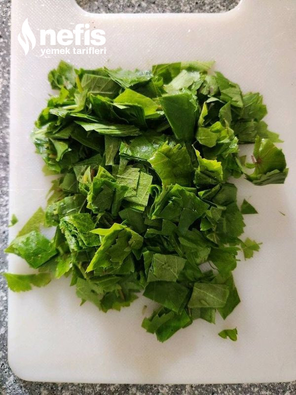 - Asma yaprakları yıkanır ve küçük küçük doğranır.