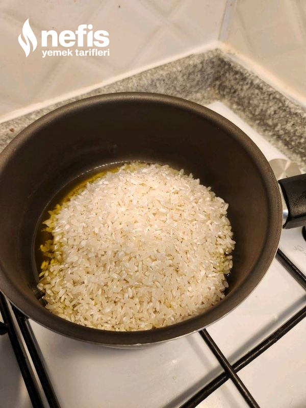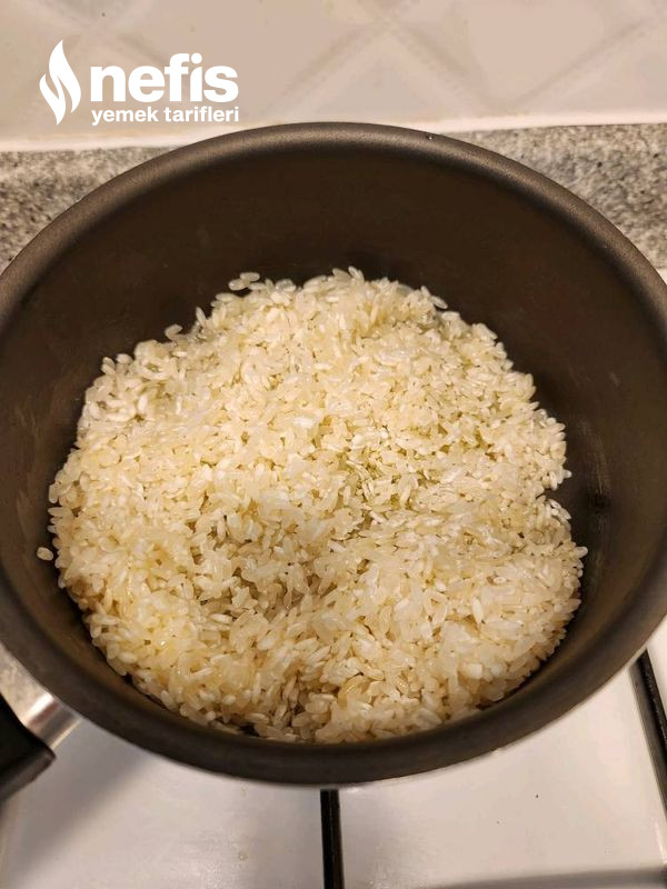 - Pirinç yeterlice yıkanır ve suyu süzülür.
