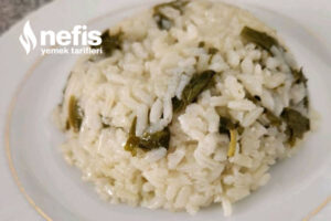 - Kavrulan pirinçlere küçük küçük doğranmış yapraklar ek edilir.