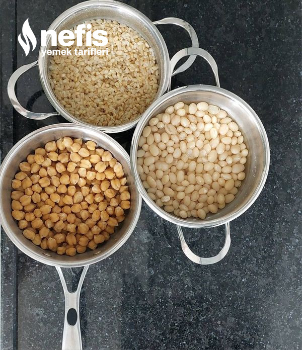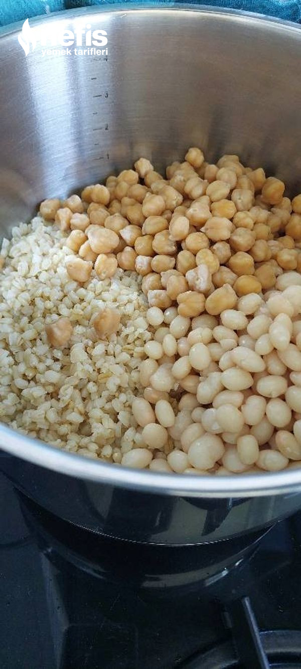 - Kelkit şeker fasulyesi, nohut ve aşurelik buğday evvelce haşlayıp, pişirmeye hazır hale getirilecek.