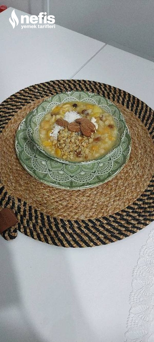 - Kaynayan aşurenin kıvamına bakarak altı kapatılır. Kaselere alınarak soğumaya bırakılıp üzeri isteye bağlı süsleme yapılır.