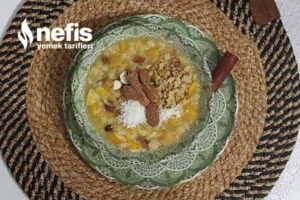 - Kaynayan tencereye evvel pirinç akabinde elma, portakal rendesi, kayısı, üzüm, kuş üzümü, hindistan cevizi, fındık, kök tarçın koyulur. Yarım su bardağında kaynayan karanfil süzülüp tencereye dökülür. 2 yemek kaşığı gül suyu dökülür.