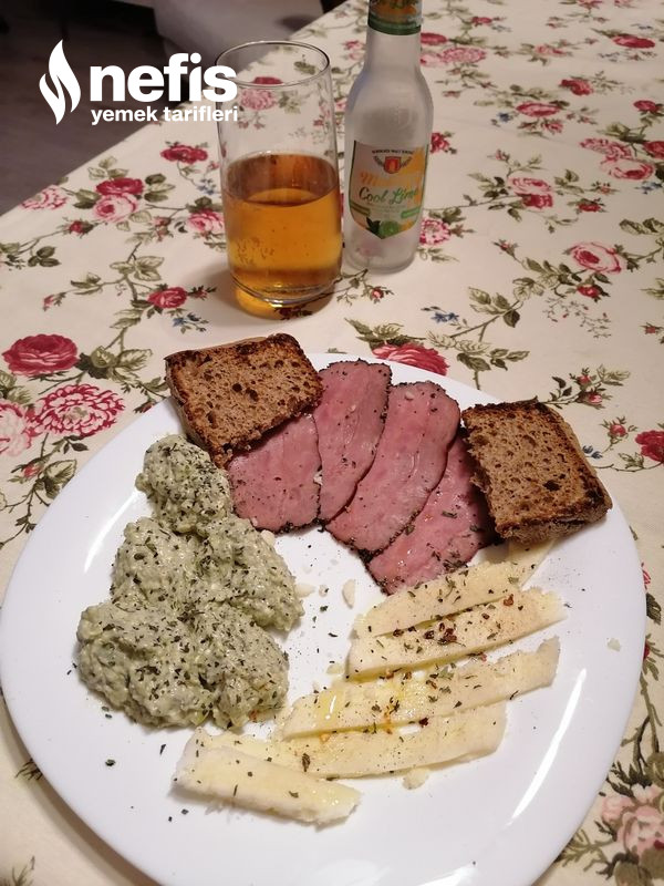- Serviste yanına 4 dilim kurutulmuş hindi eti ve 4 ince dilim tulum peyniri eklenerek servis edilir.