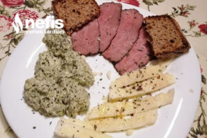 - Serviste yanına 4 dilim kurutulmuş hindi eti ve 4 ince dilim tulum peyniri eklenerek servis edilir.