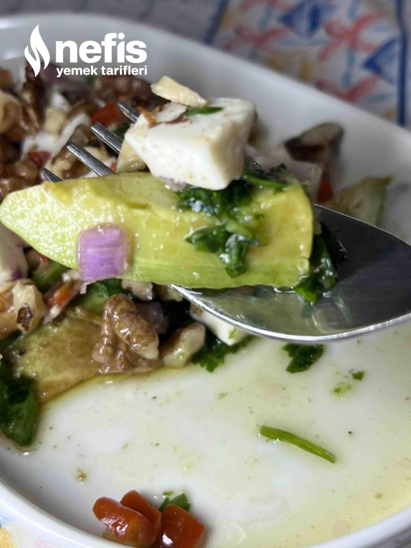 5. Son olarak avokadoları kızarttığımız tavaya cevizleri alıp bir 2 dakika ocakta çevirin cevizleri de en üzerine dökün son olarak üzerine damak zevkinize nazaran limon suyu eği yapın afiyet olsun💐🤗.